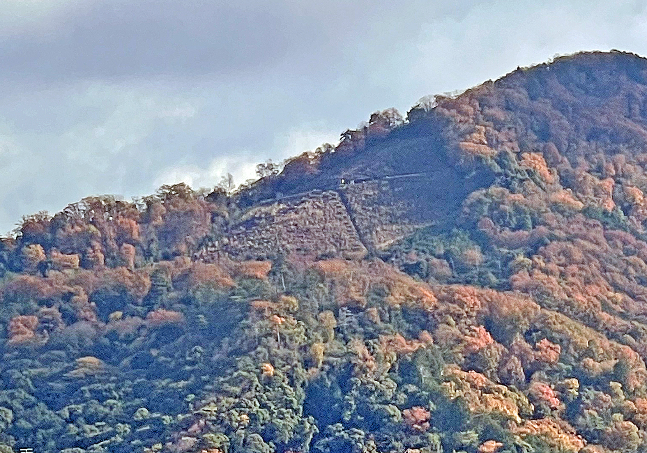 如意ヶ岳の大文字山も、赤茶っぽい紅葉に包み込まれるようになりました。秋から冬へと模様替えです。