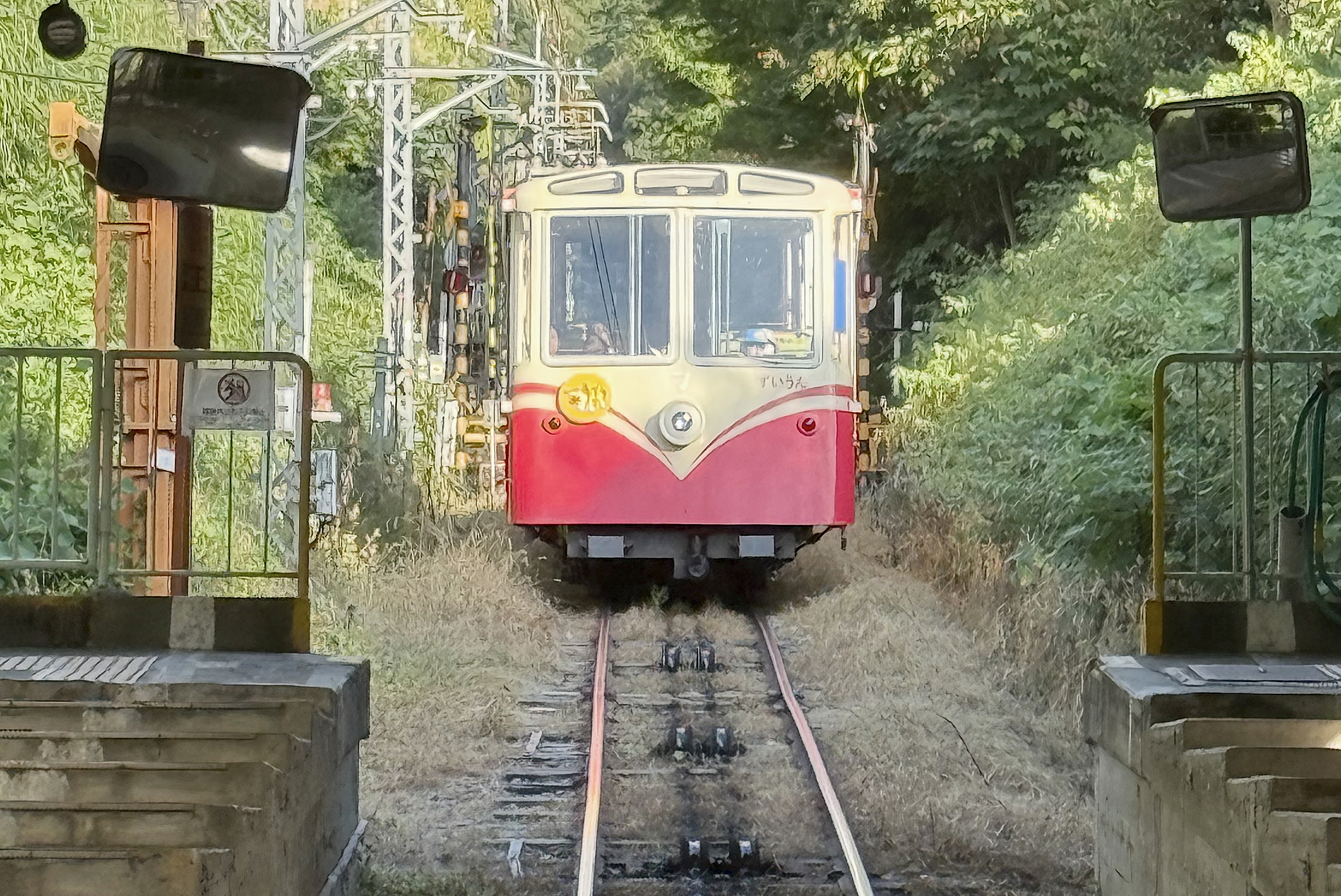 ちょうど、高安山から降りてきたケーブルカーが到着するところでした。