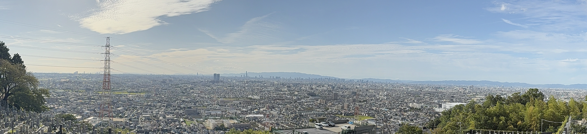 お墓からは、大阪平野が一望のもとに見渡せます。左手に淡路島があります。