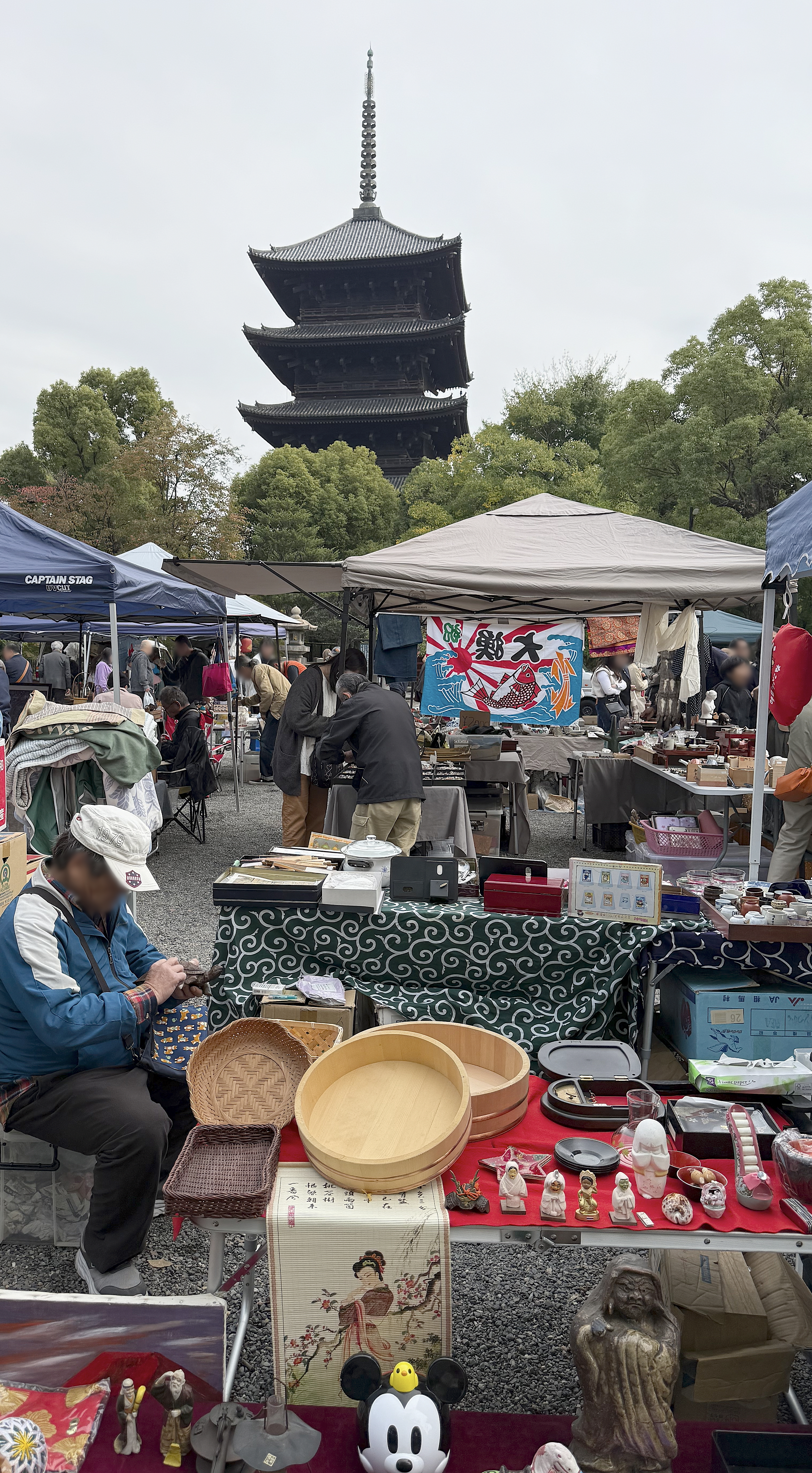供養にと、お昼に東寺へお参りに行き、ご冥福をお祈りしてきました。ちょうどガラクタ市だったので、ブラブラと骨董品を見てまわりました。