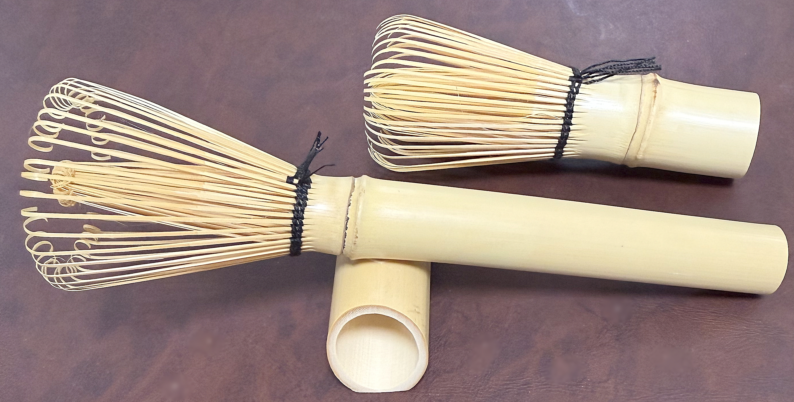 おじさんに聞いたところでは、海外の方がコップの中に抹茶を入れ、この縦長の茶筅で掻き混ぜて飲んでおられるとか。日本ではこの使い方での需要はなさそうです。しかし、こうした小道具を通して、お茶が国際文化交流に一役買っている一面を見た思いがしました。