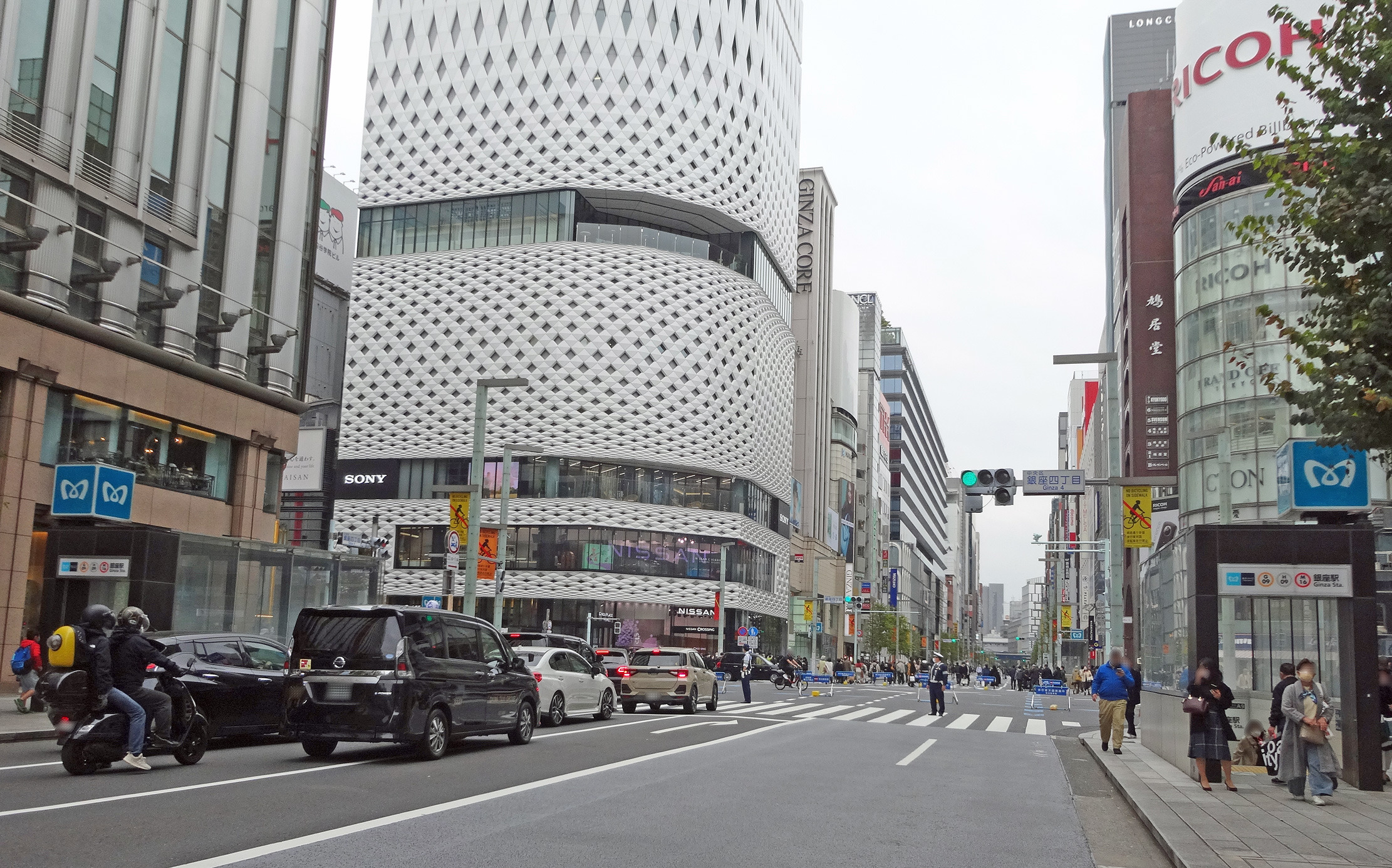 銀座のど真ん中に、1250年も前の和歌が、変体仮名を凝らしてこんなに新しい感覚の意匠が、街ゆく人の目に飛び込んで来るのです。