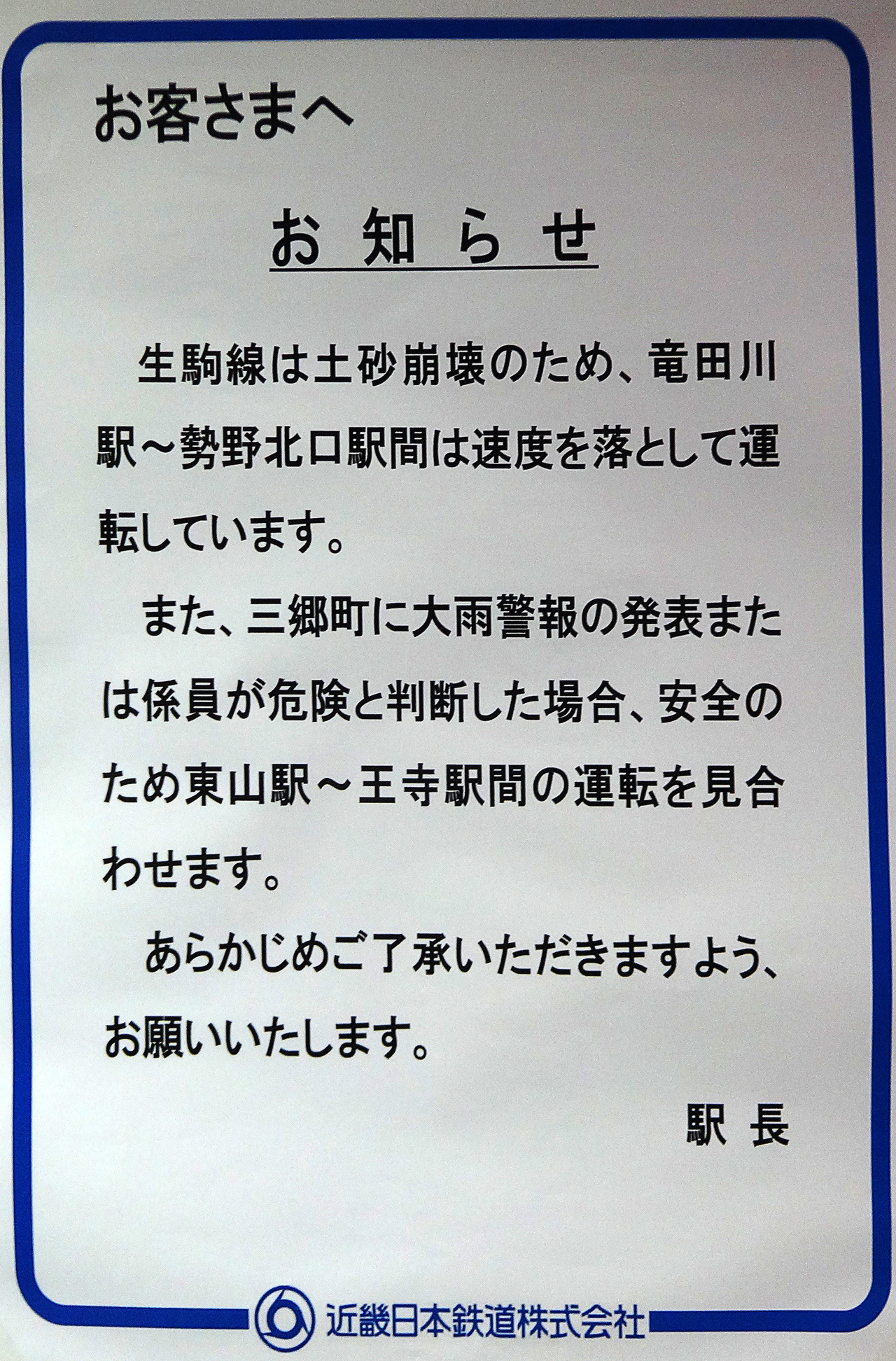 帰りに岡寺駅の柱に、注意を促すこんな掲示を見かけました。
