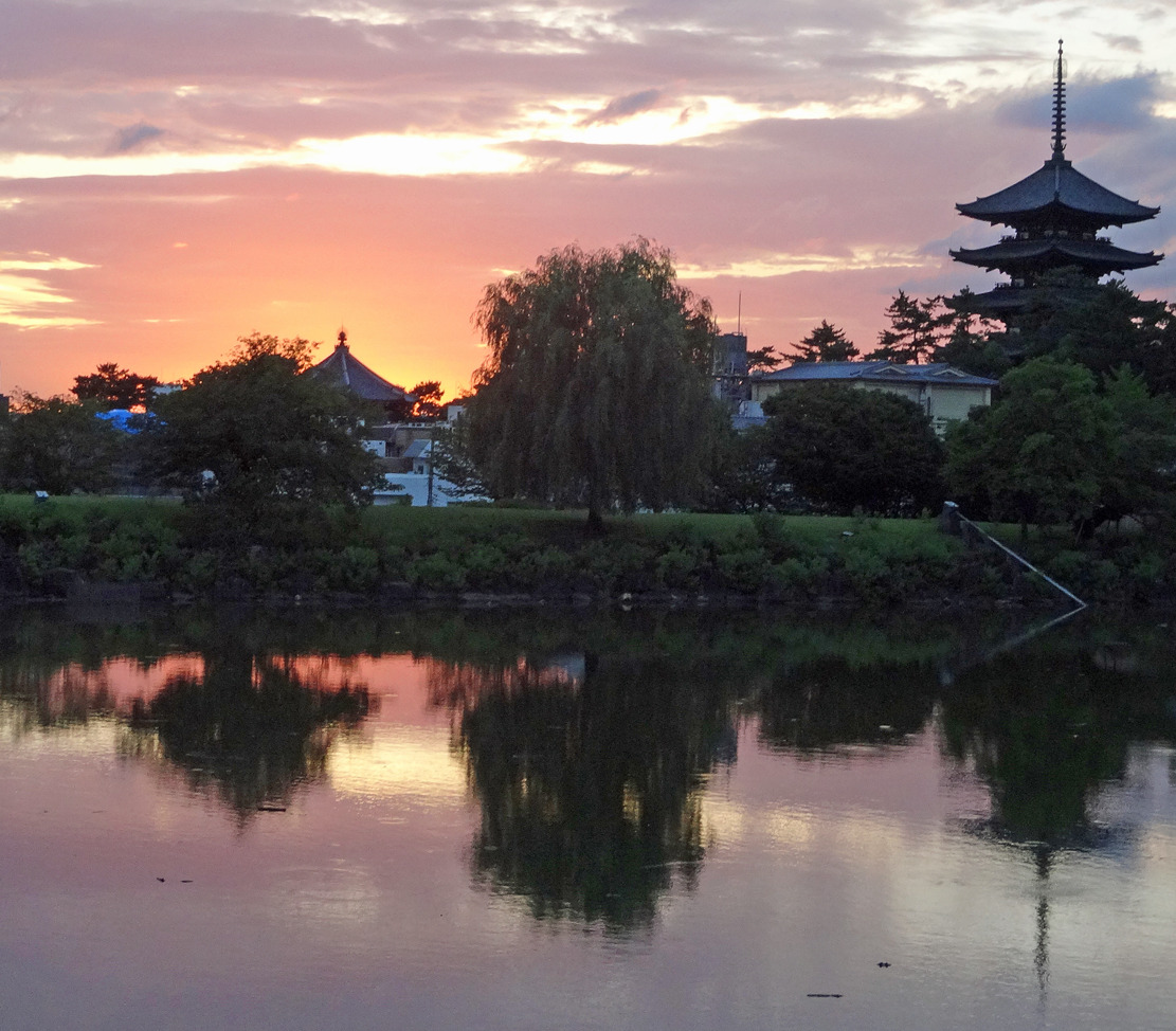 猿沢池から望む興福寺の五重塔は、気持ちがいいほどに絵葉書の景色です。