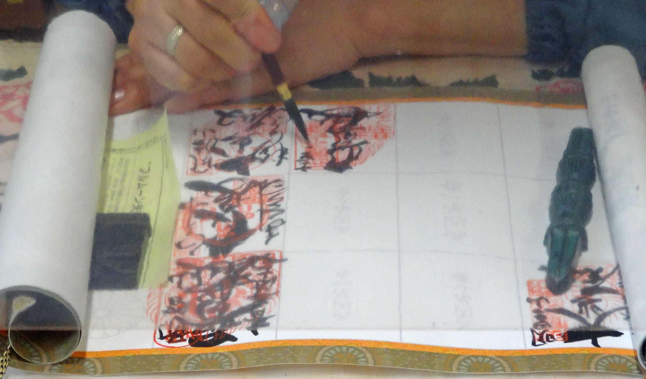 ここで書いてくださった文字は、滲んでいてまったく読めません。もっと濃い墨で、もっと筆の先端で、神経を張り詰めた繊細な線で書いてほしいものです。