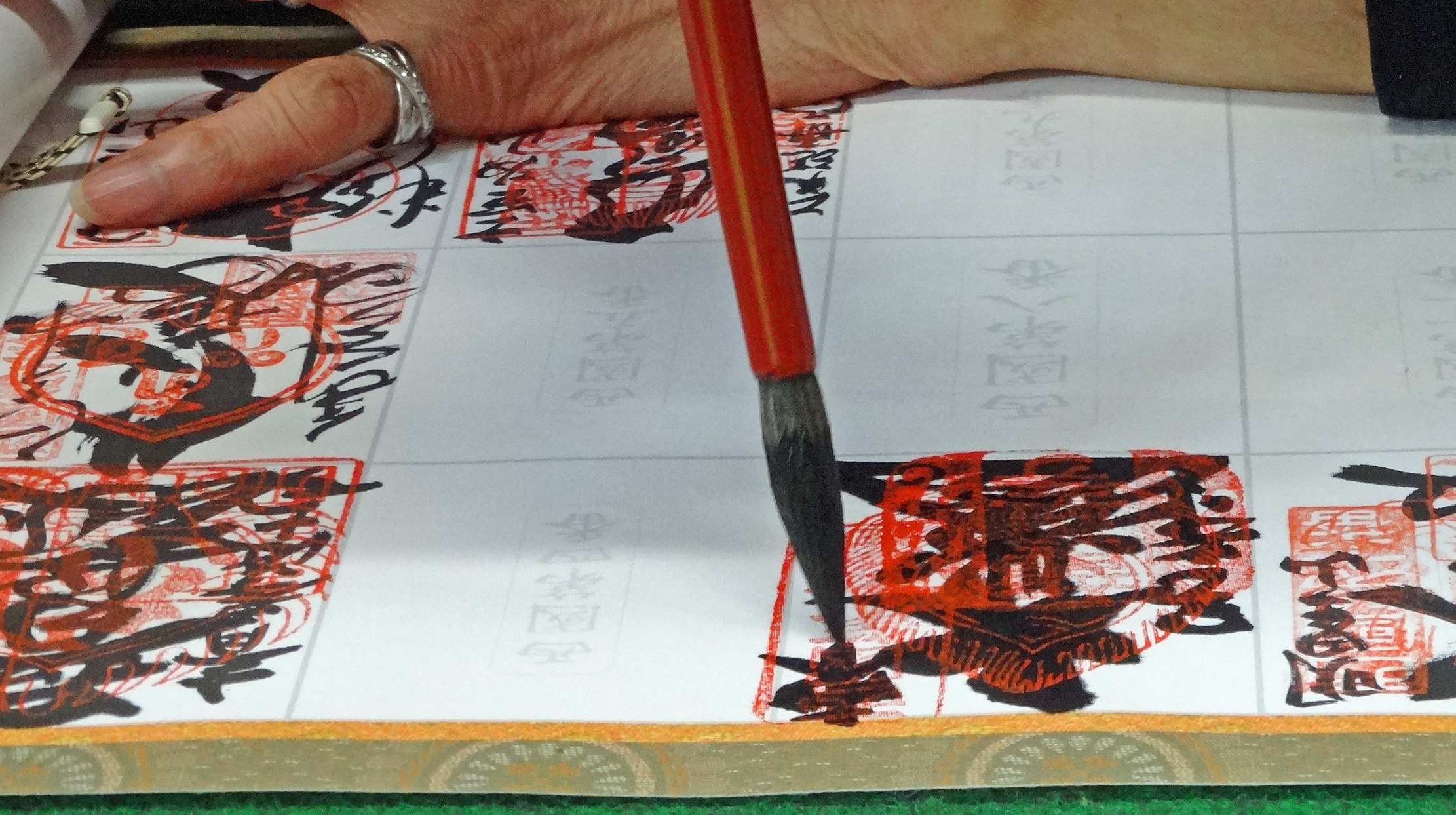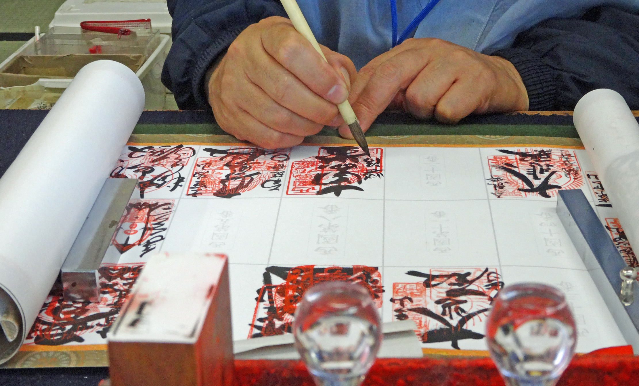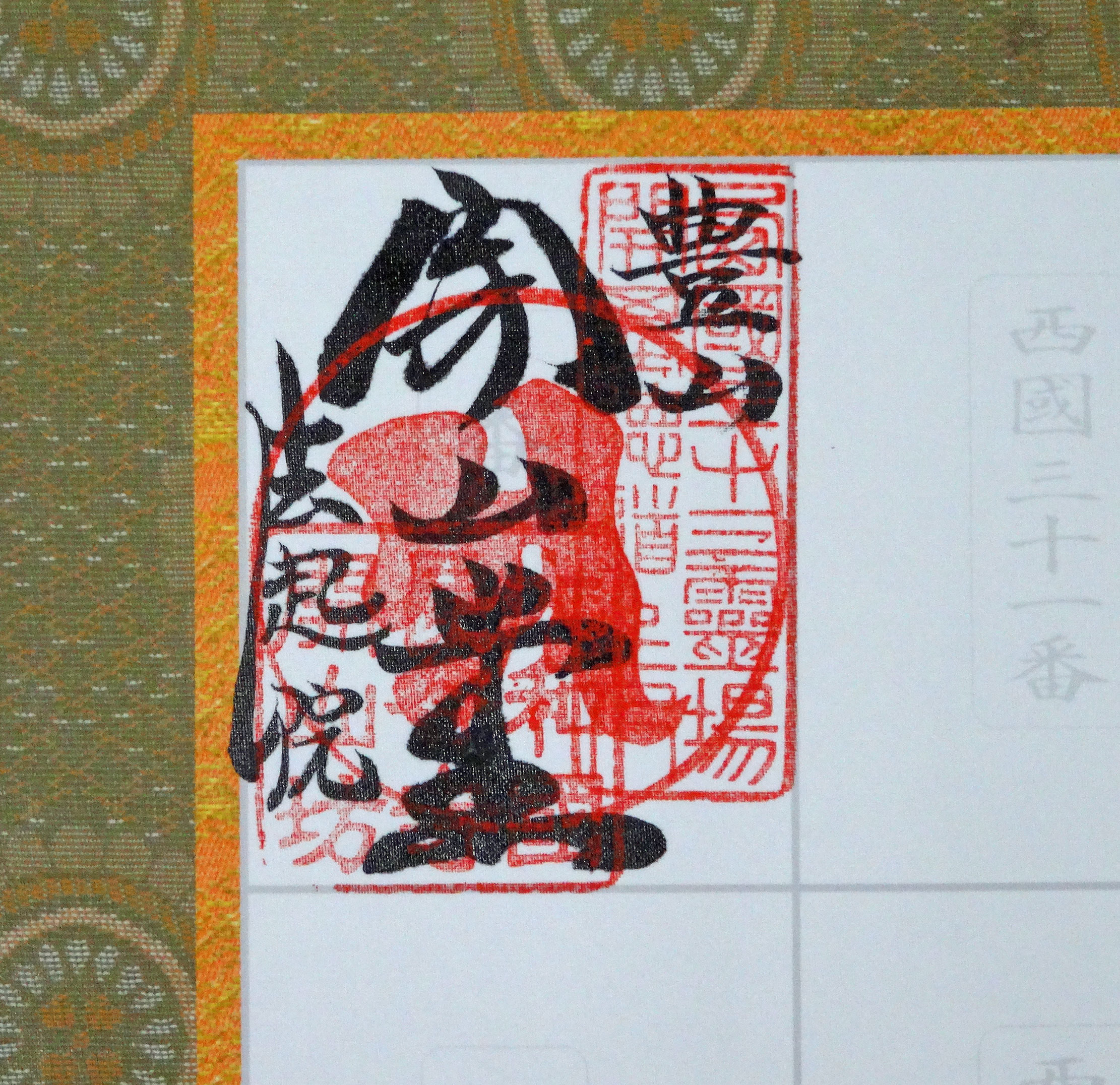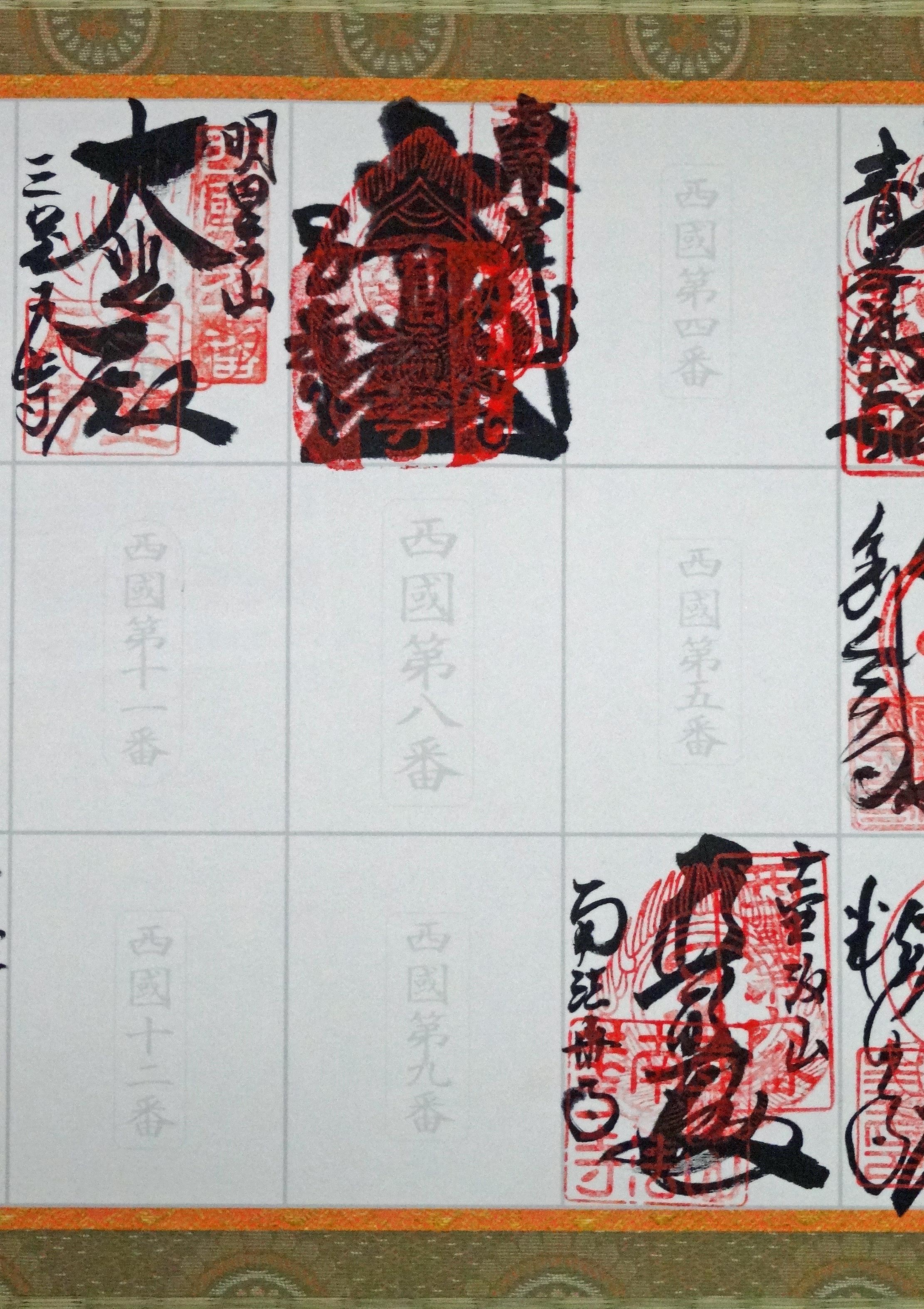 持参した軸に朱印をいただきました。前回の第7番岡寺では墨が滲んで文字がまったく読めないほどに汚くなっています。今回は大丈夫かとハラハラしながら見つめました。きれいに書いていただき、安堵しました。