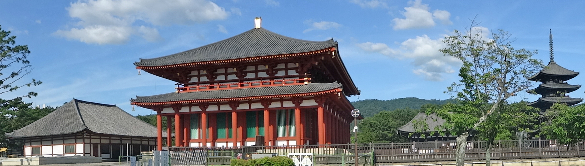 中金堂の右に国宝の東金堂、その右にこれも国宝の五重塔が見えます。