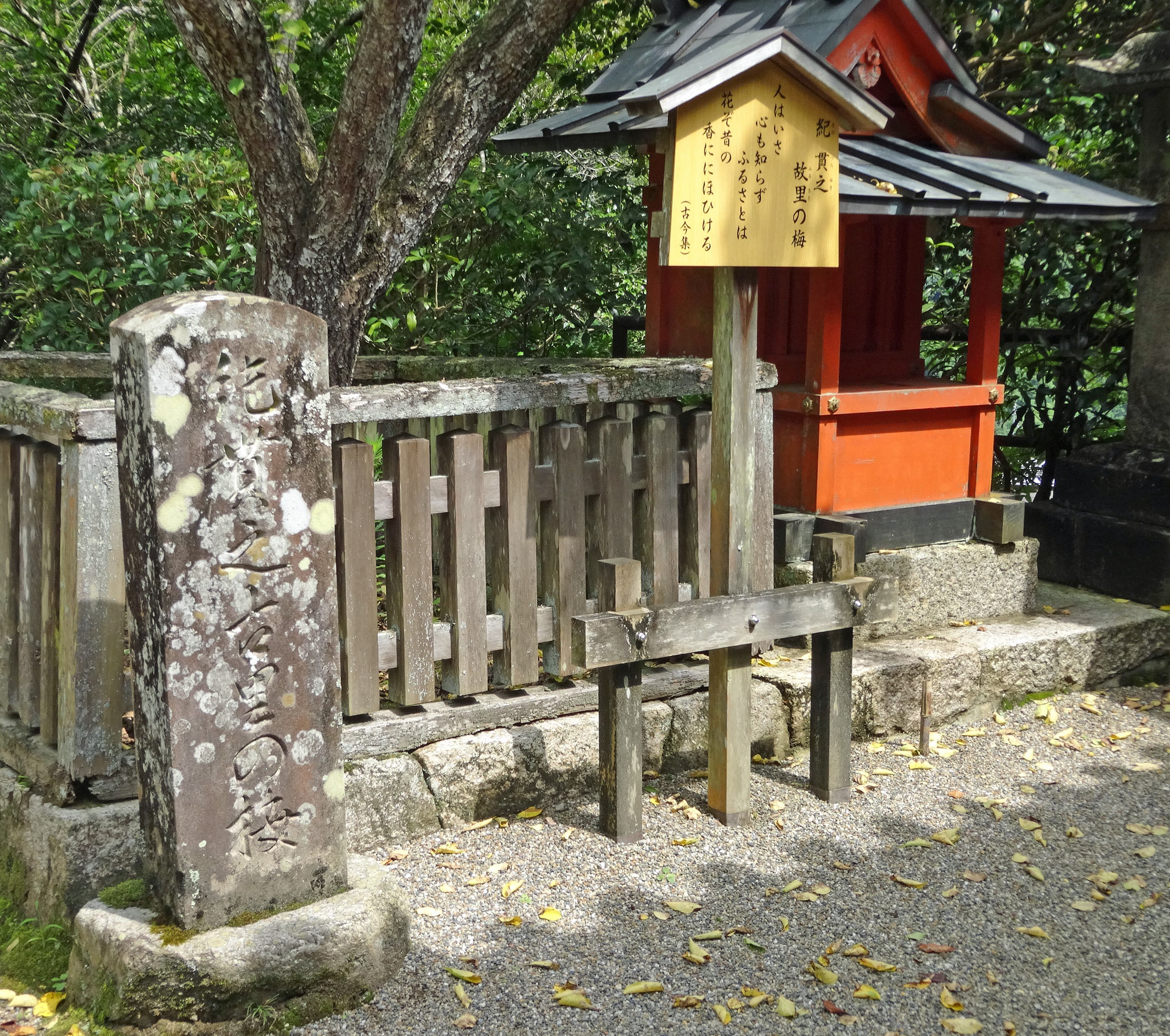 登廊の最後の曲がり角には、紀貫之の碑があります。