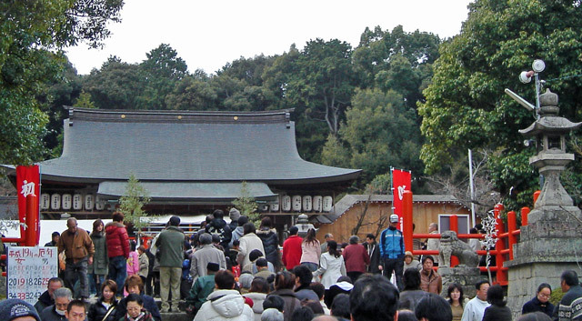 この龍田大社も、すごい人でした。賽銭を投げてお祈りをしようとする人が、長蛇の列をなしていました。
