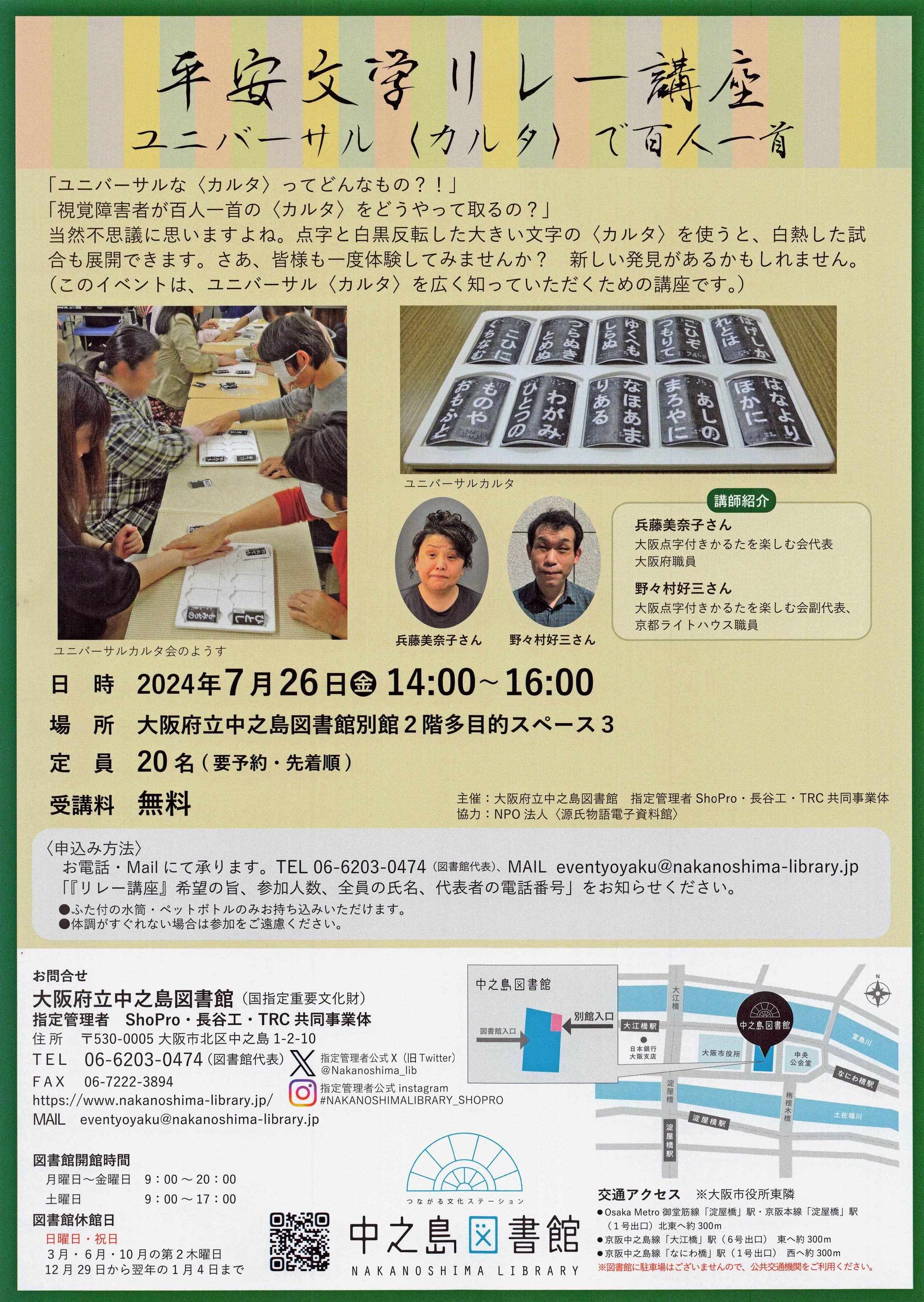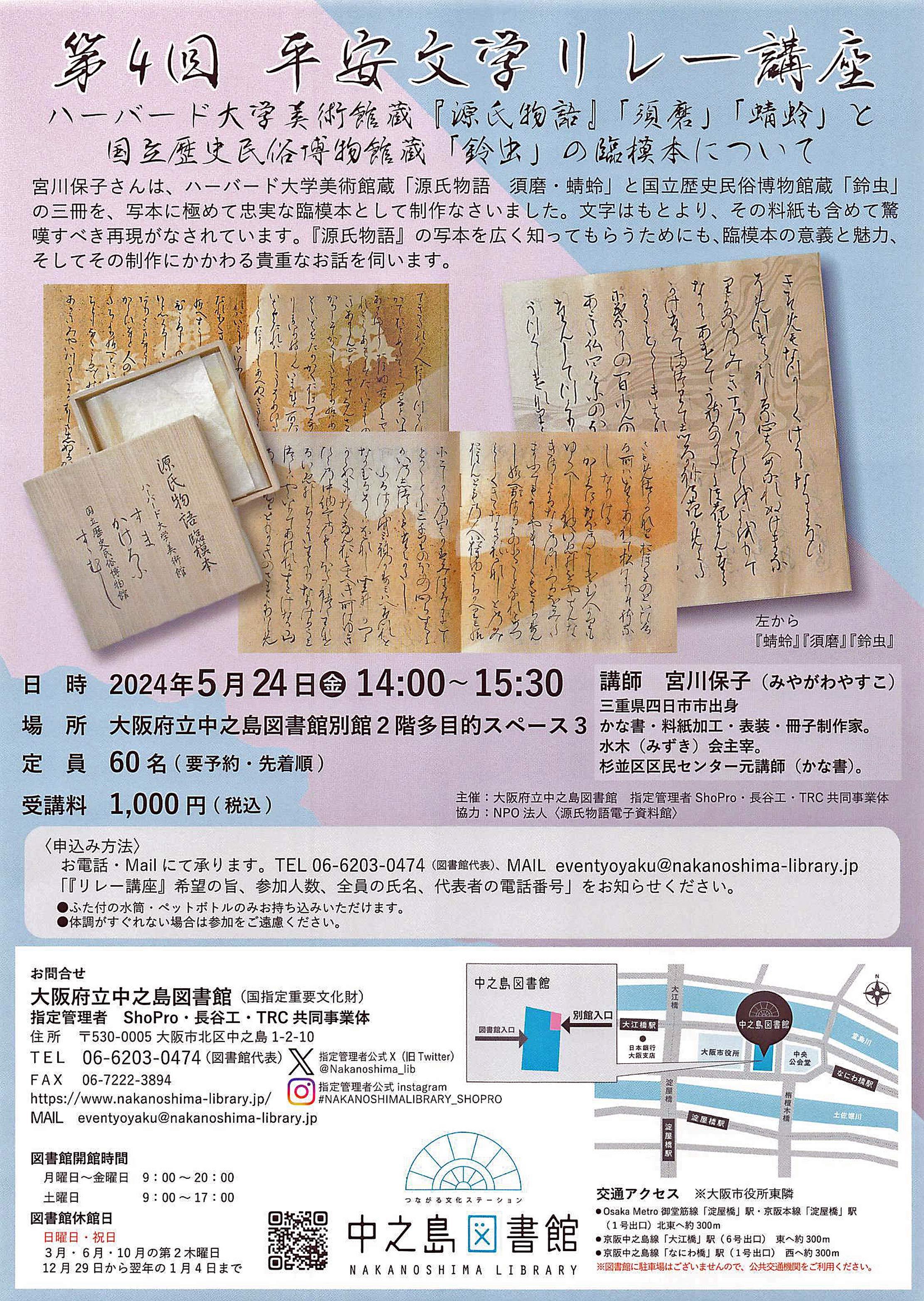 中之島図書館での2025年度「新古典塾平安文学」のチラシ