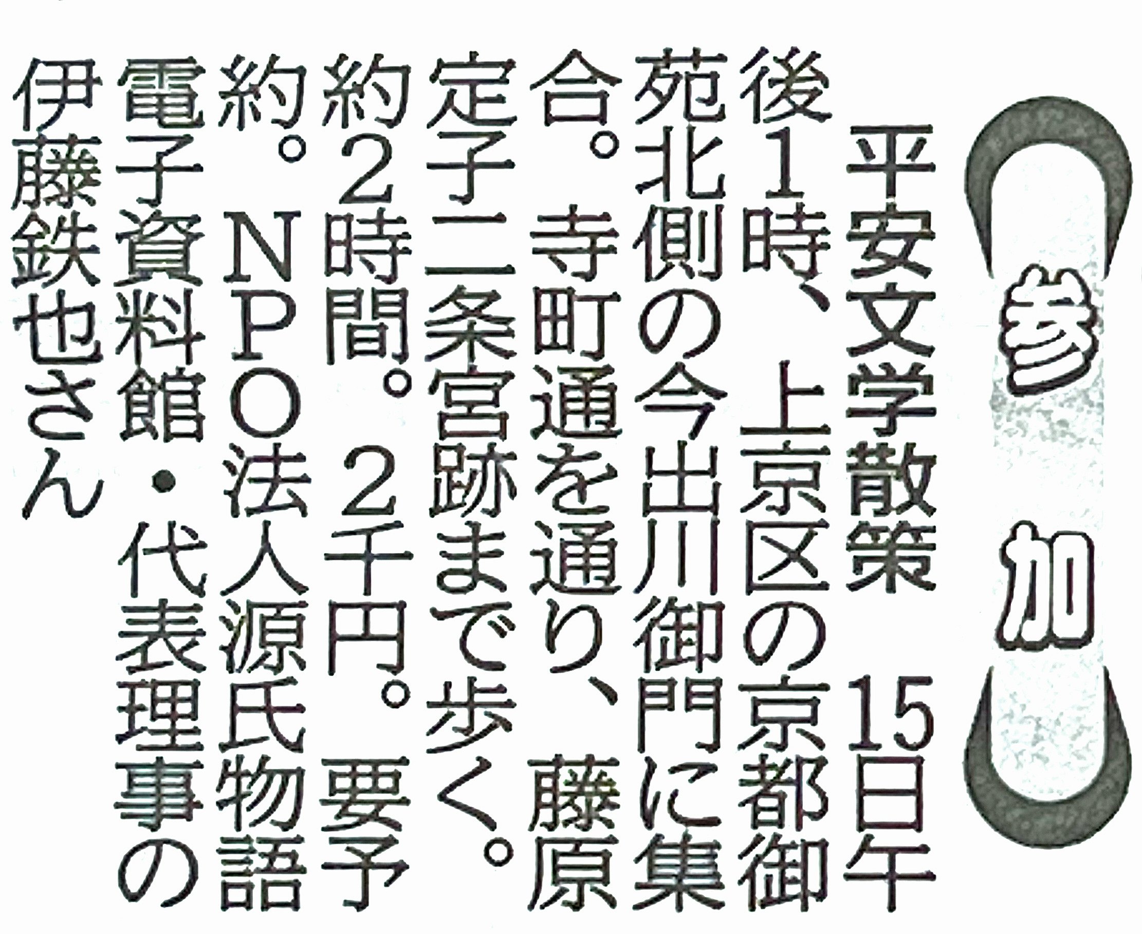NPO主催の〈第5回 平安文学散策〉(12月15日)のご案内