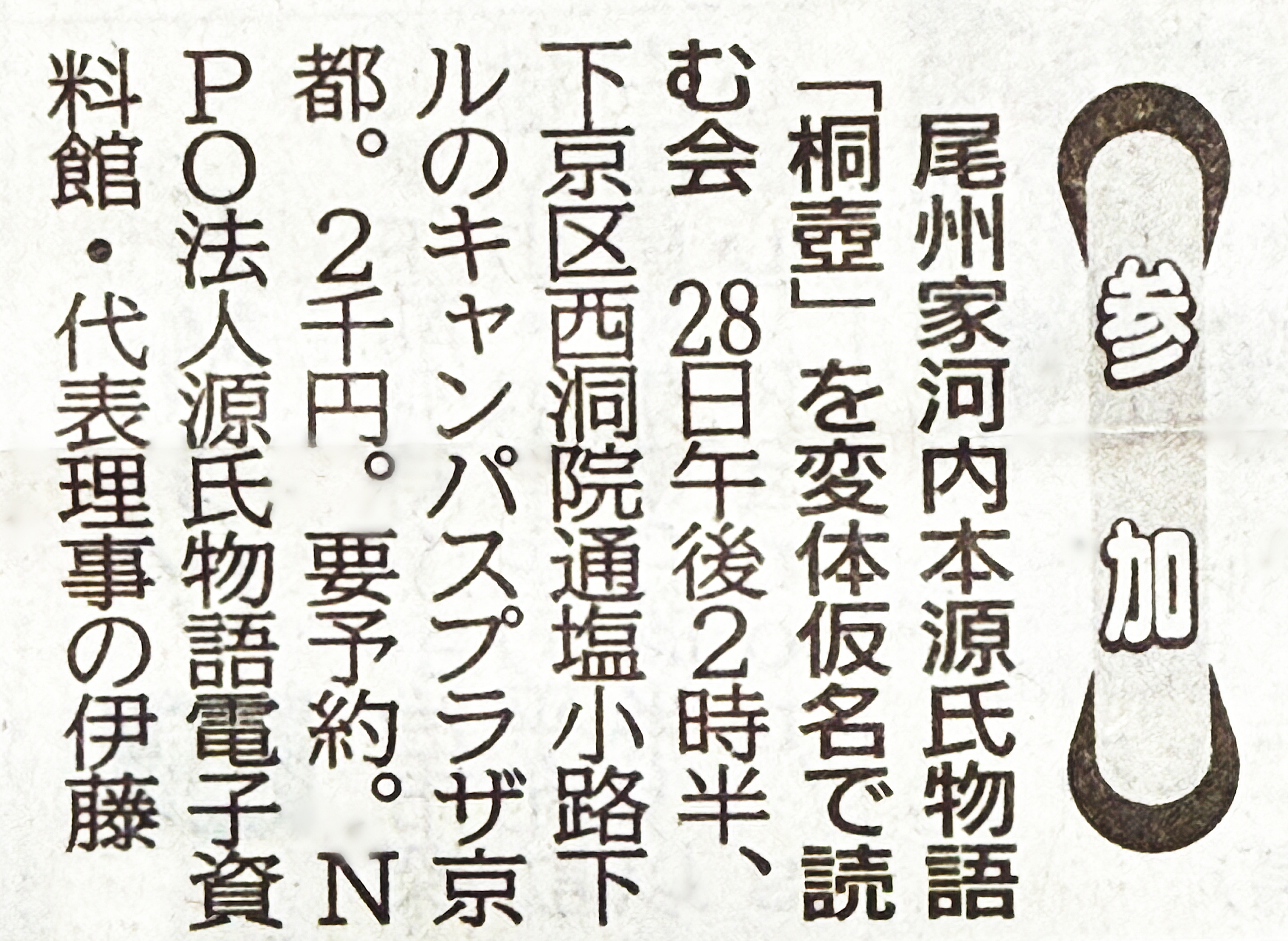 ご案内2題(1/2)キャンパスプラザ京都で河内本「桐壺」を読む会(No.4)