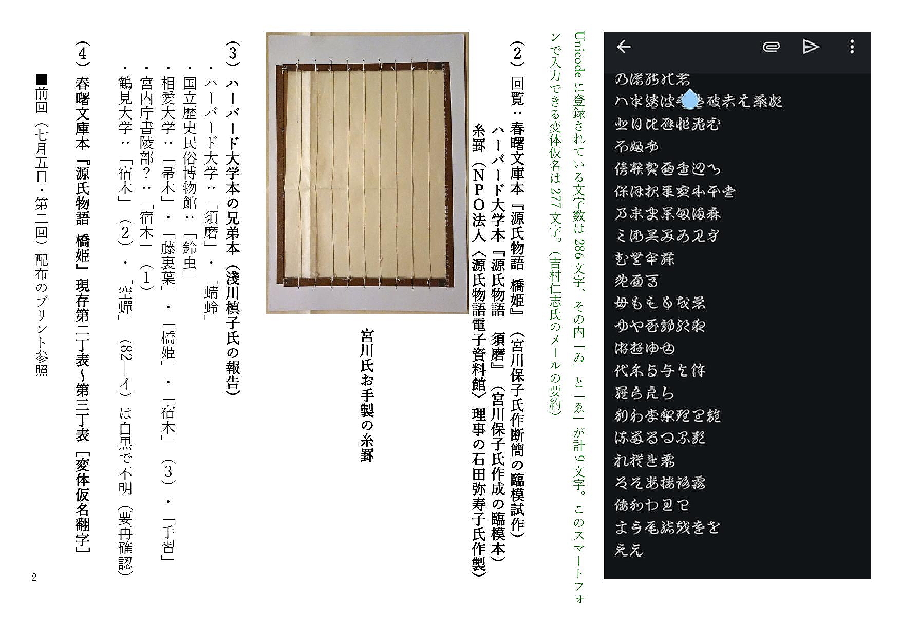 30分の間をおいて、次はハーバード大学蔵『源氏物語 蜻蛉』の書写本文を、[変体仮名翻字版]にしたプリントを見ながら確認をしました。