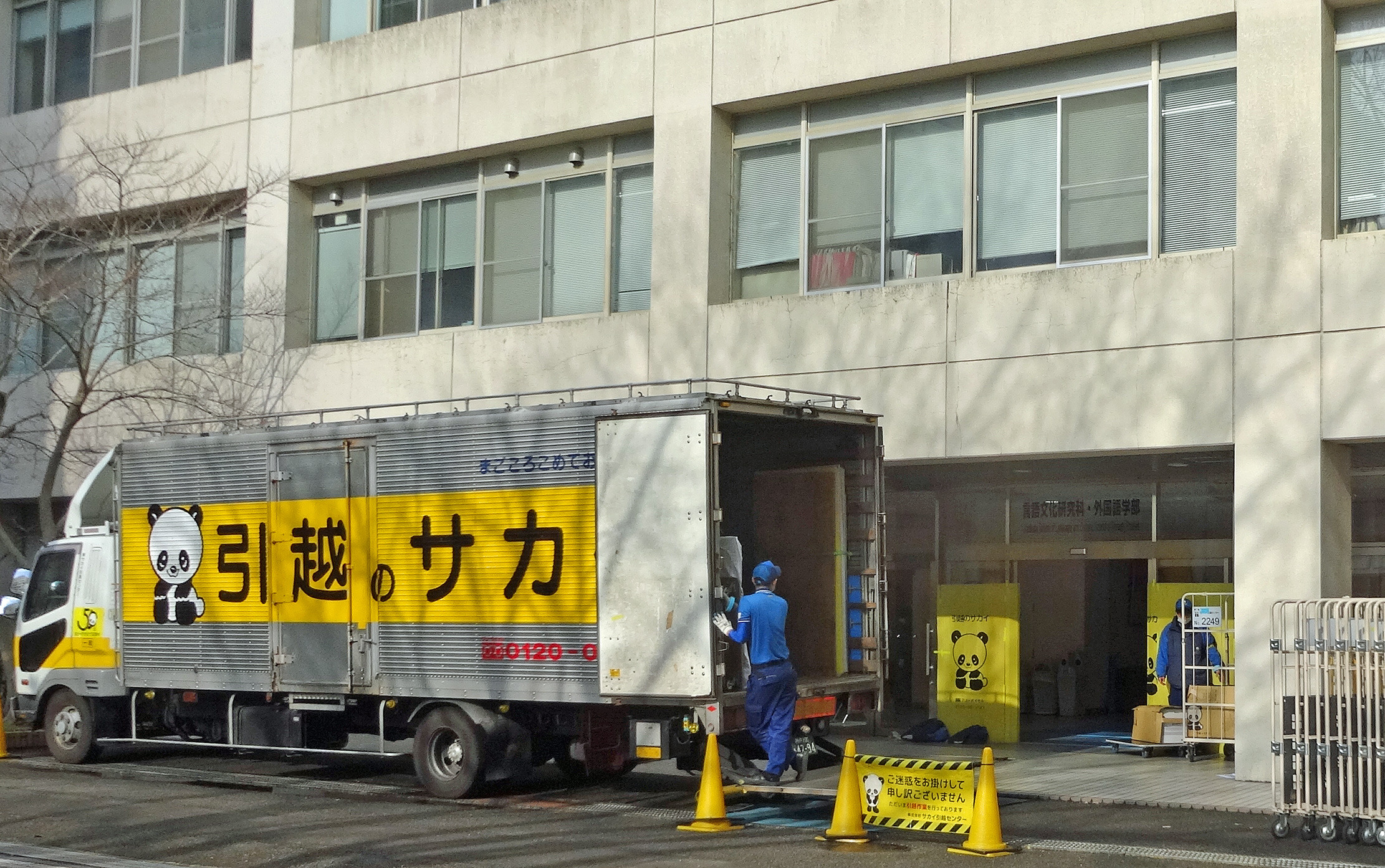 名古屋駅でJR中央線に乗り換え、高蔵寺駅からスクールバスで大学へ行きました。気持ちのいい樹々の中に、爽やかな学校がありました。写真左端の建物の2階が、本日の会場でした。