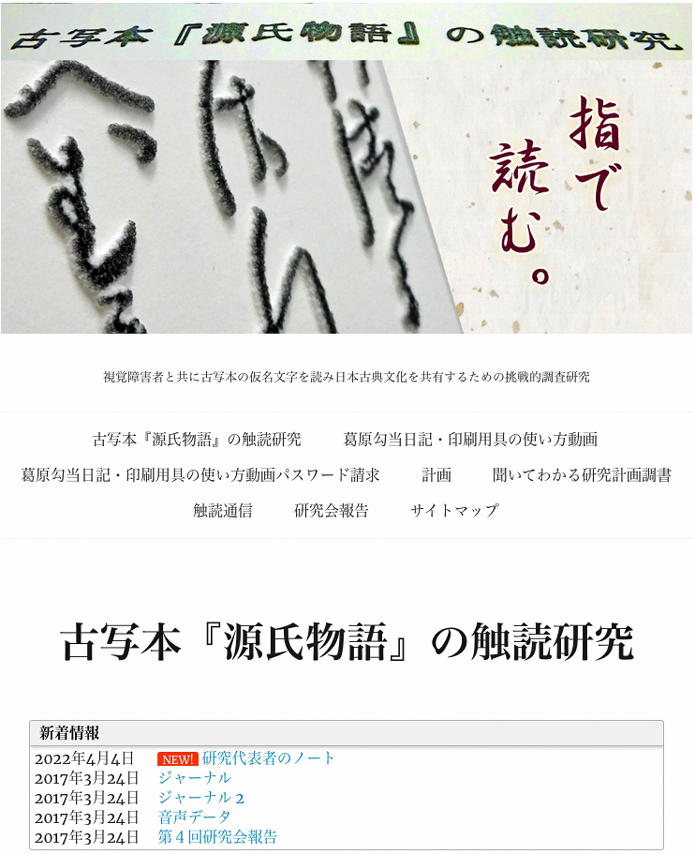 併せて、「古写本『源氏物語』の触読研究」(http://genjiito.sakura.ne.jp/touchread/)のサイトの再建も果たしました。
